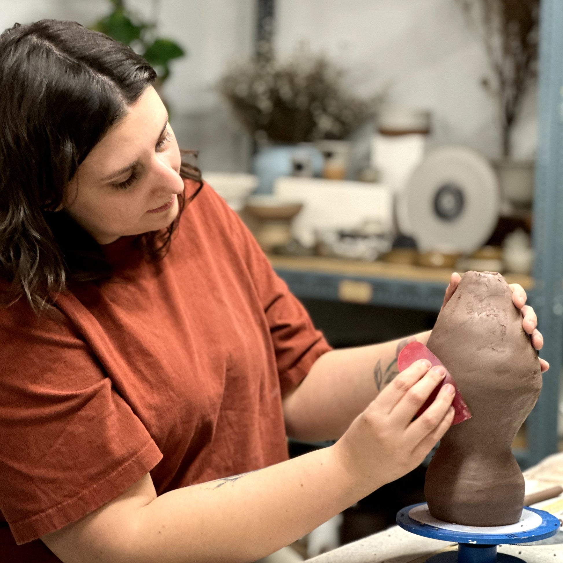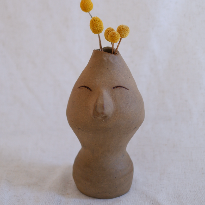 Fabriqué avec soin et construit avec des colombins, ce soliflore est... original ! Reconnaissez-vous le nez de la famille Petit ? 😂