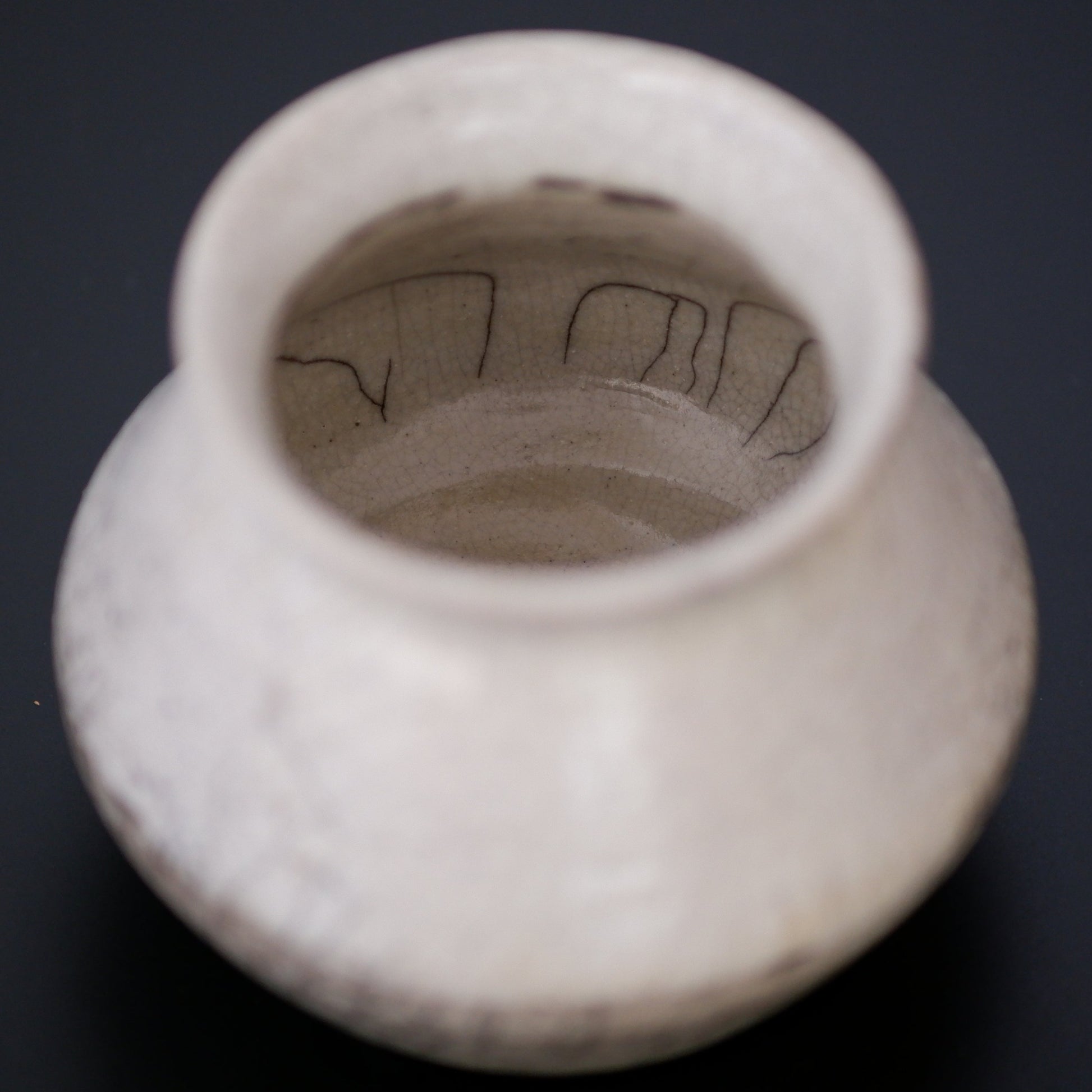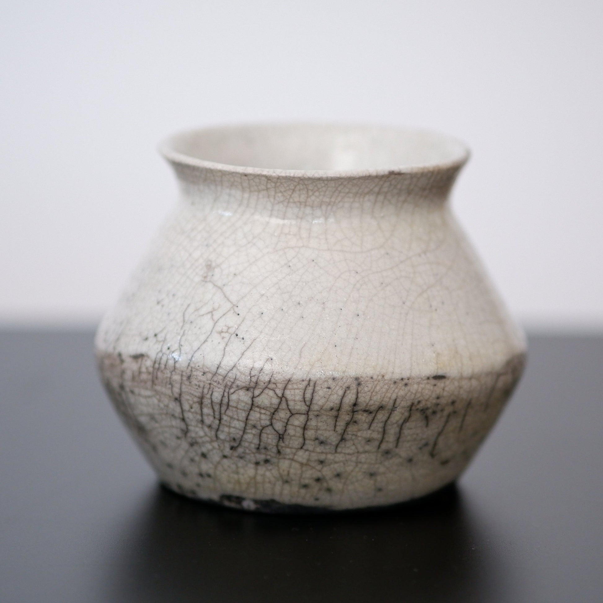Raku means joy and pleasure in Japanese. I was lucky to experience American Raku in a workshop in the country. Raku is a process full of energy: the glowing red pieces from the kiln, then the flames when they hit the wood chips in the barrels, and all of us throwing more chips at the pieces while they're still hot, running around to create the best contrasts and cracks in all of our pieces.