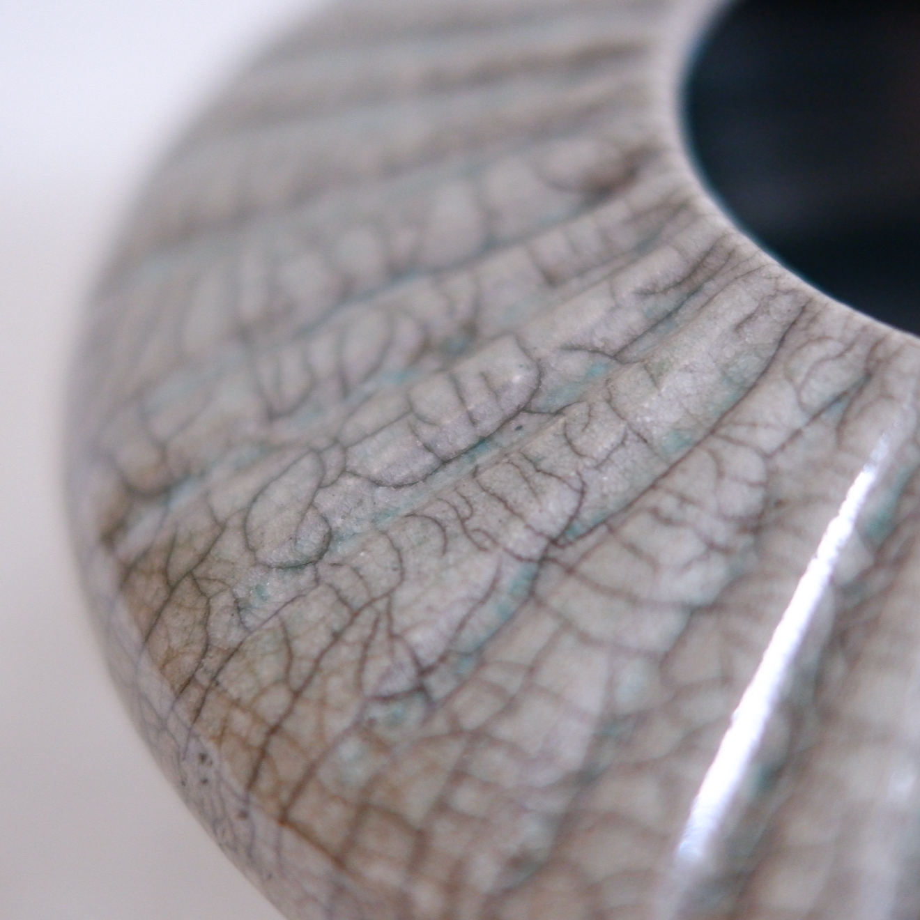 This eye-catching Blue Sun Donut Vase is a real showstopper! You'll love its classic white crackle glaze on the outside and turquoise glaze on the inside, made completely unique through the American raku firing technique.