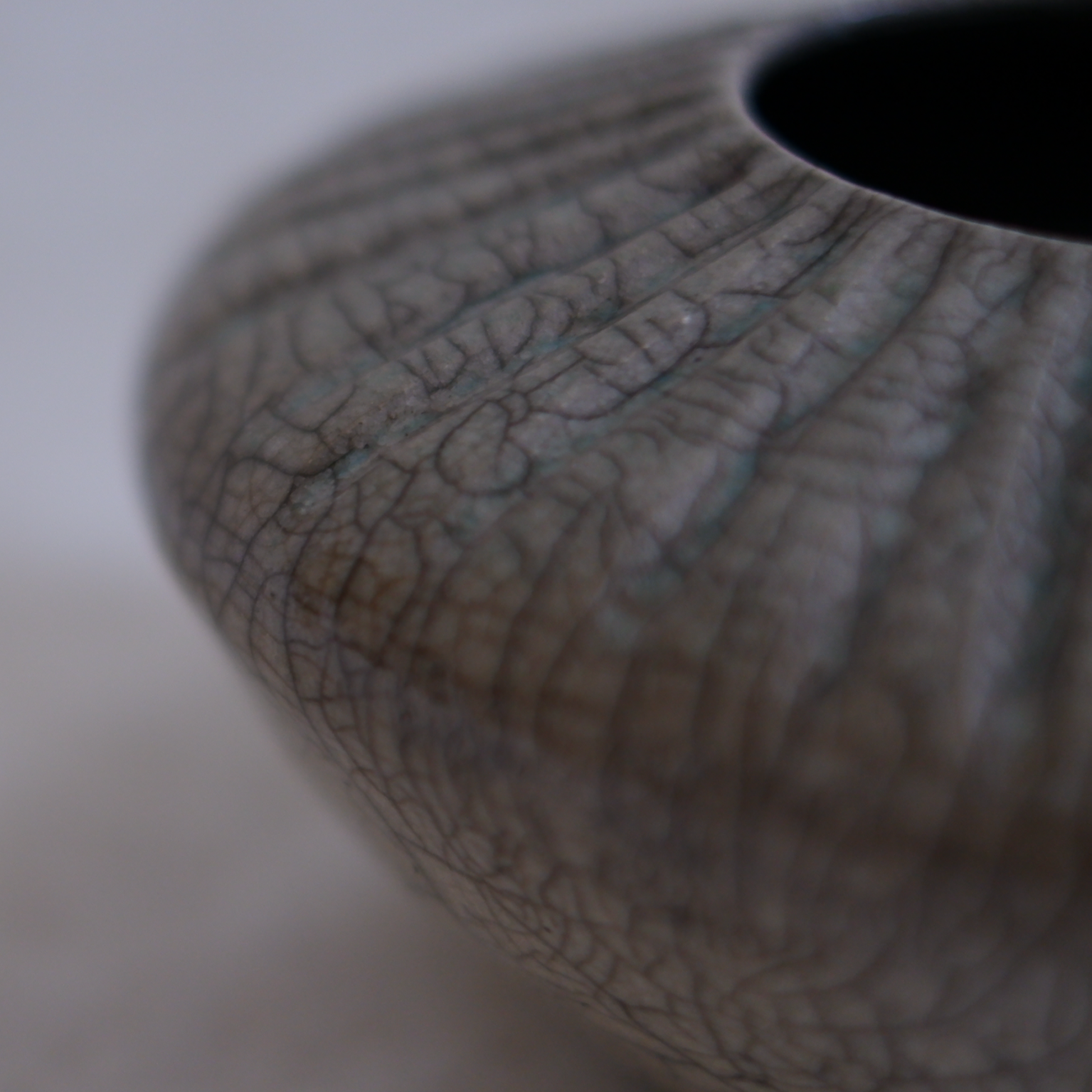 Raku means joy and pleasure in Japanese. I was lucky to experience American Raku in a workshop in the country. Raku is a process full of energy: the glowing red pieces from the kiln, then the flames when they hit the wood chips in the barrels, and all of us throwing more chips at the pieces while they're still hot, running around to create the best contrasts and cracks in all of our pieces.