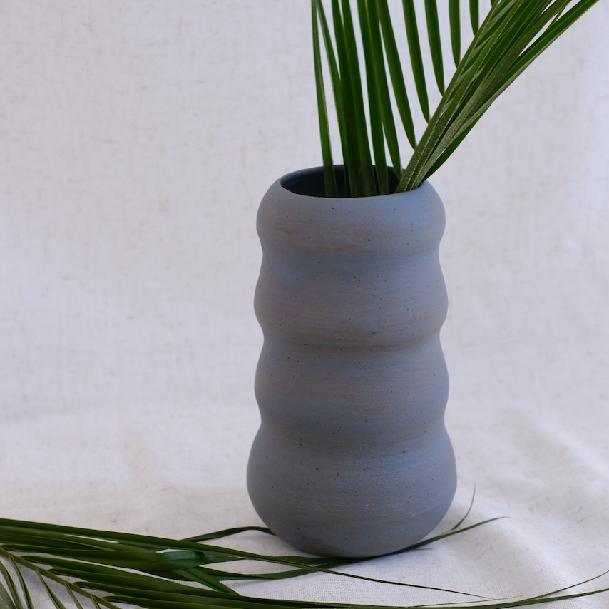 Make a splash with the Bubbling Waters Vase! Handmade on the potter's wheel, this vase features a unique matte blue glaze. Perfect for adding a touch of vibrancy to any room, this vase is a must-have for any bouquet lover.