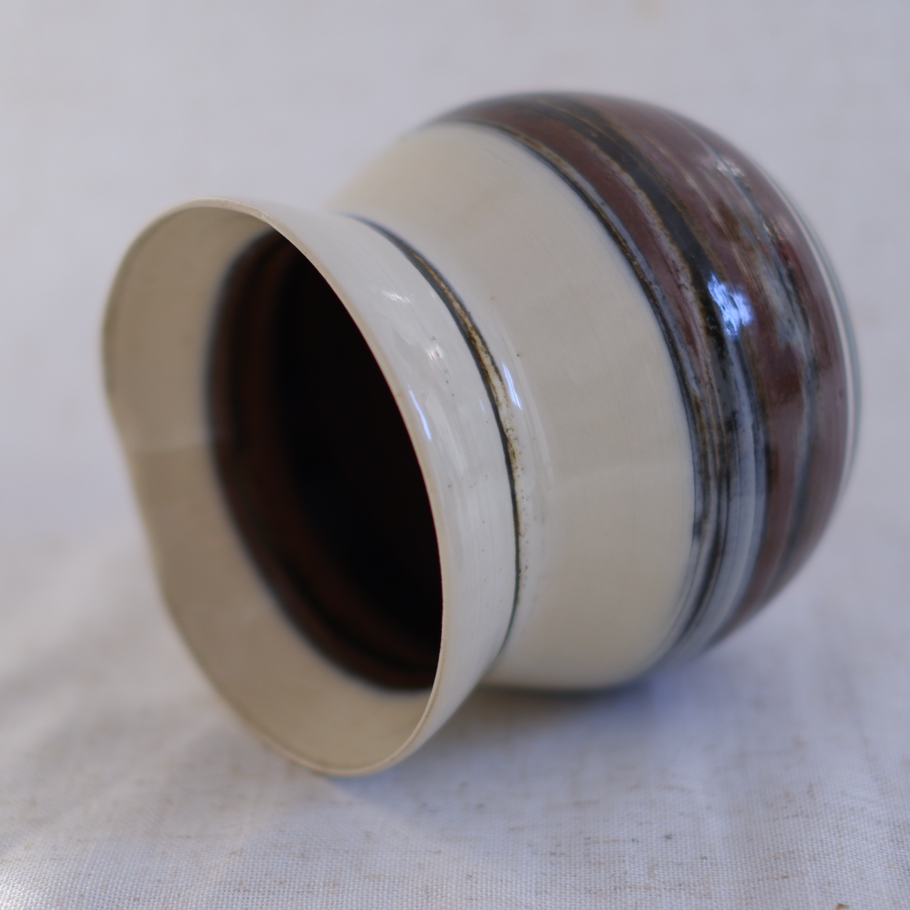 Add some whimsy to your kitchen with the Colors of Fall Cookie Jar. The marbled effect of the mixed clay creates a unique, one-of-a-kind look. Embrace the quirks of the slightly wonky lip and the neutral, high contrast colors.