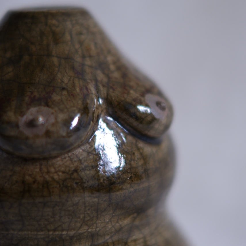 This green Crackle Boob Vase is what unique treasure dreams are made of! Hand-thrown and hand-sculpted with a crackle glaze finish, this one-of-a-kind piece has been fired using the American raku firing technique - and is all set to add a dose of style to your home.