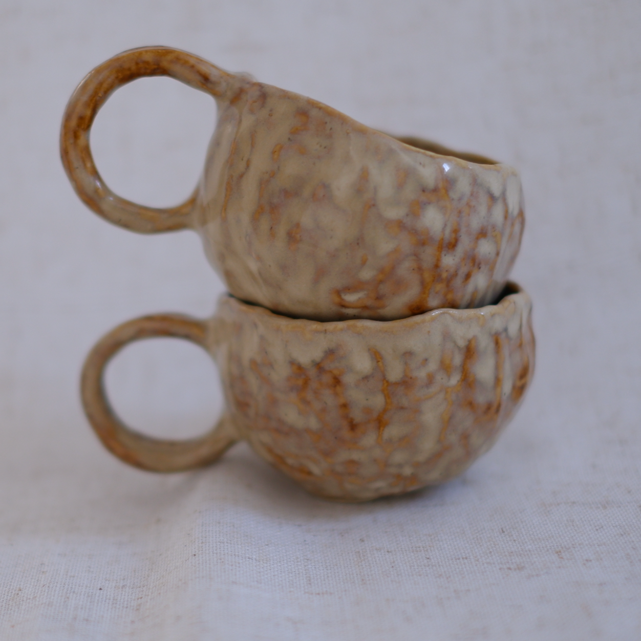 Introducing my Golden Hour Pinch Mugs! These handmade, dainty little mugs are pinched by hand to create a unique shape. With their golden colors, they're perfect for enjoying your favorite hot beverages.