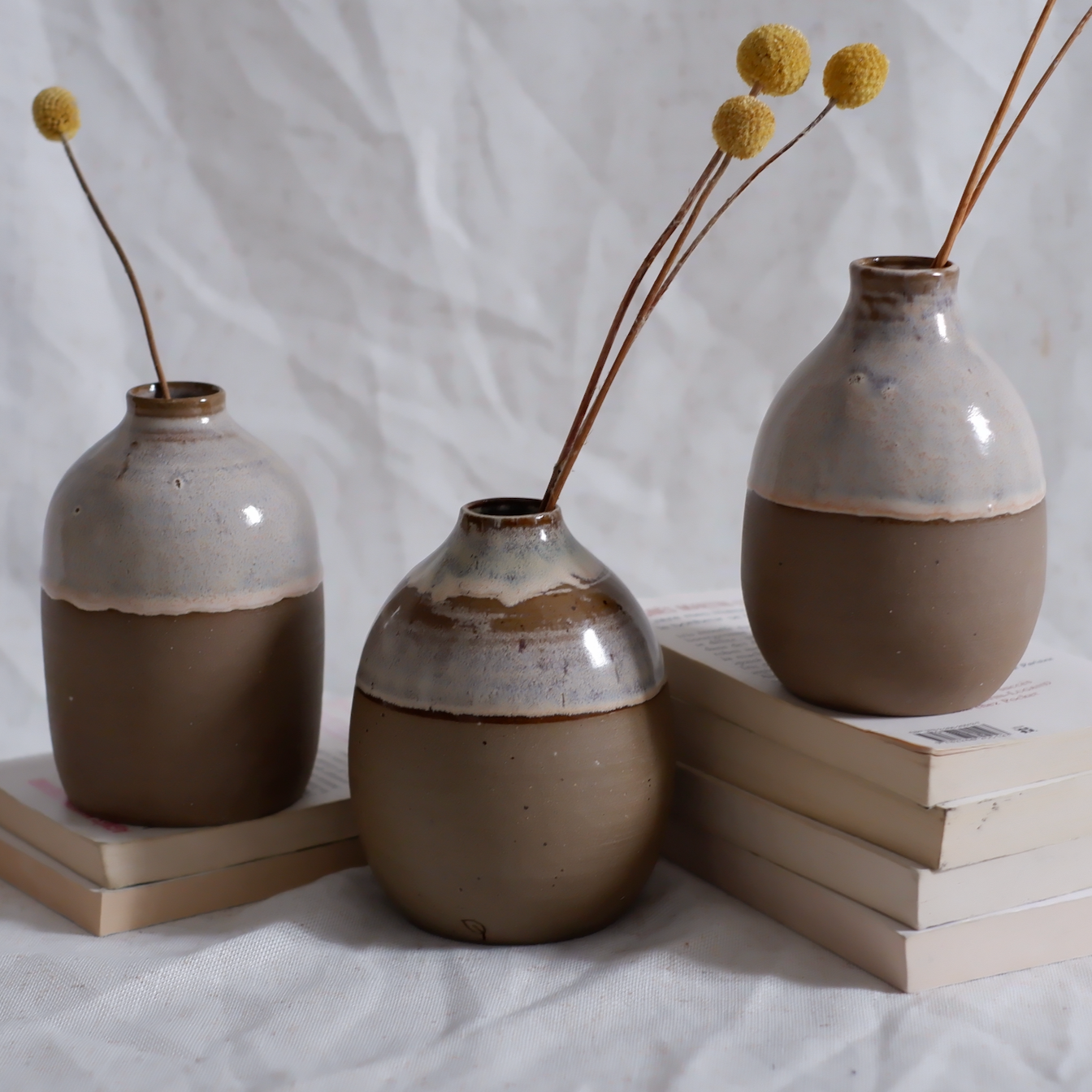 Delicate and textured, these vases feature a light muted pink glaze that adds a touch of sophistication. Display your favorite flowers in these quirky bud vases.