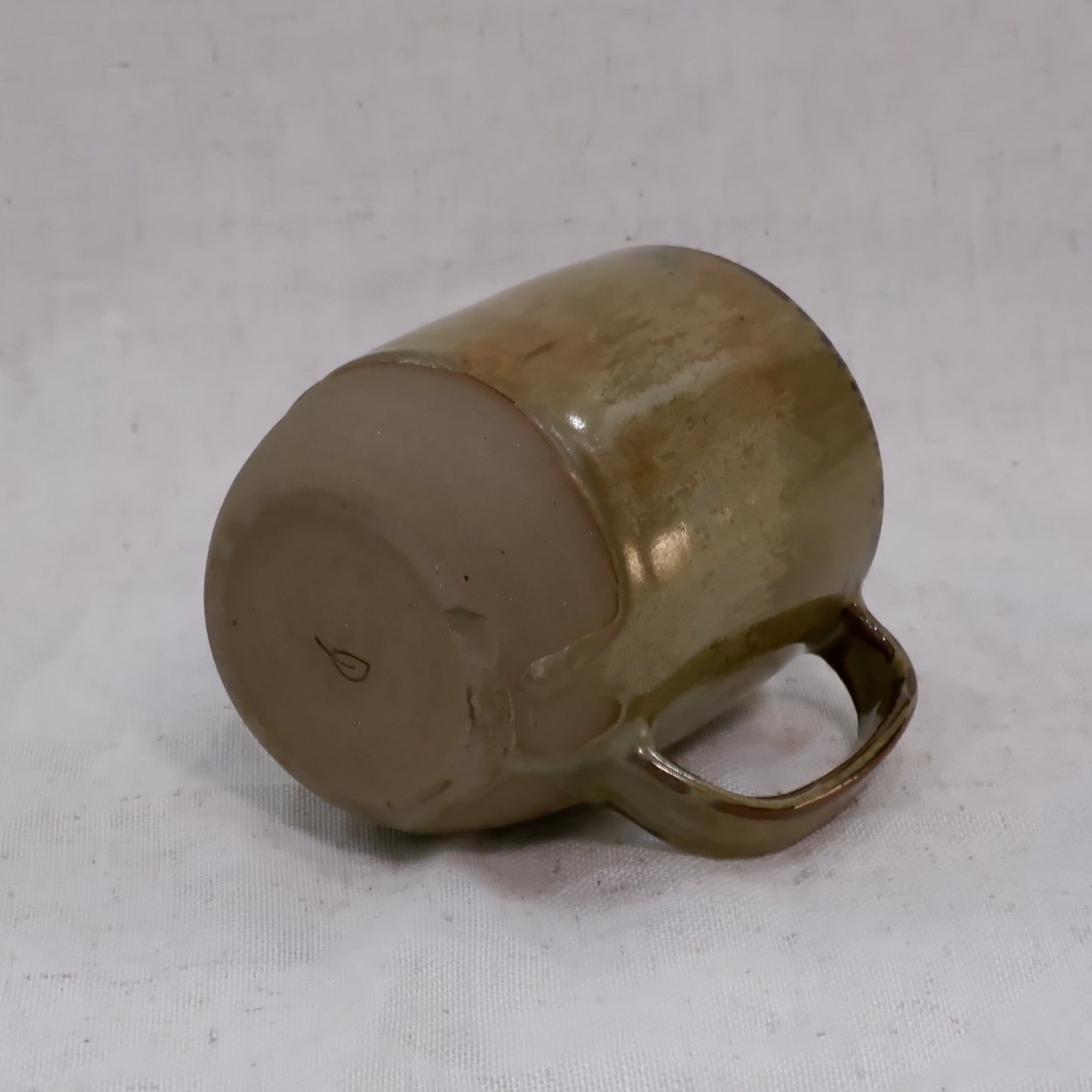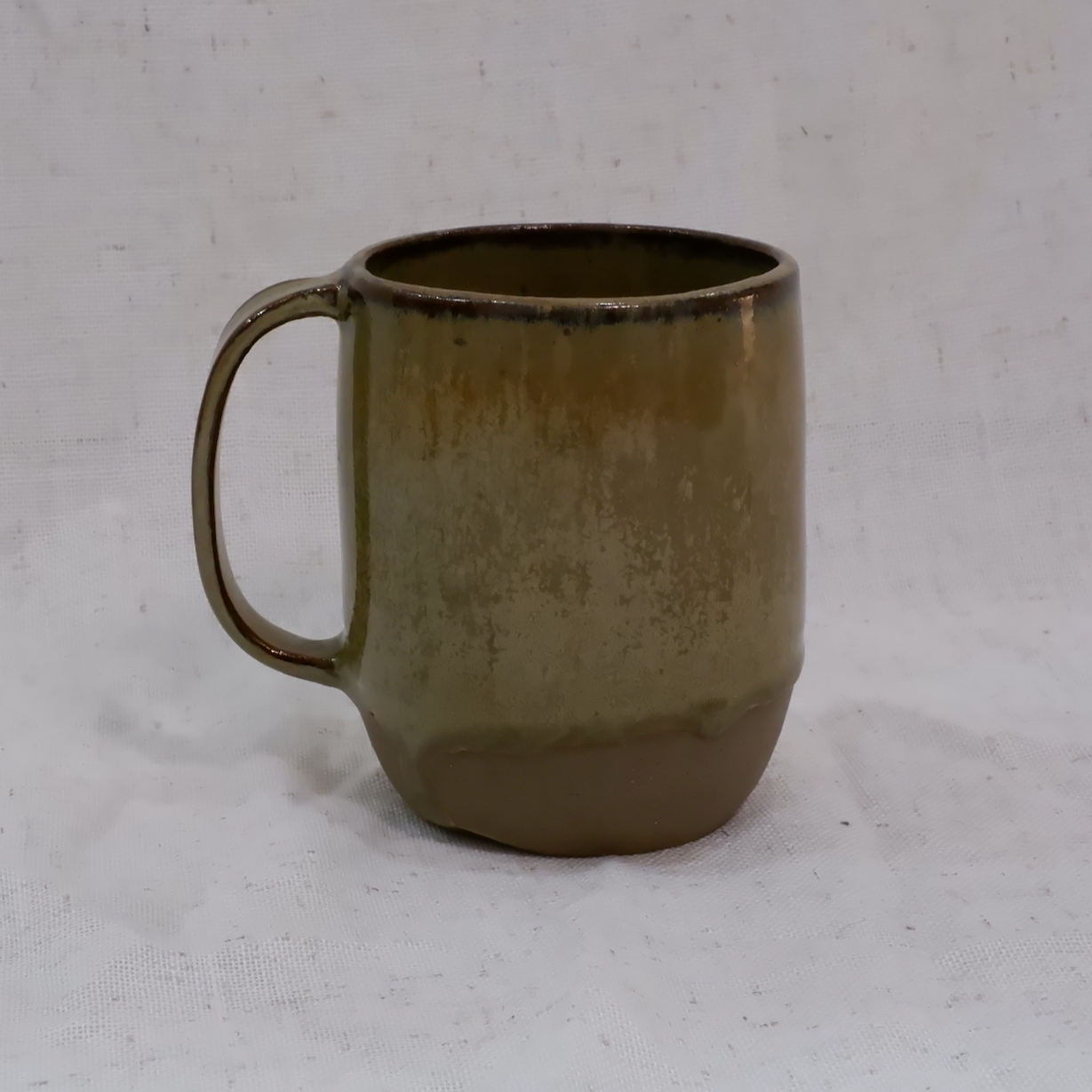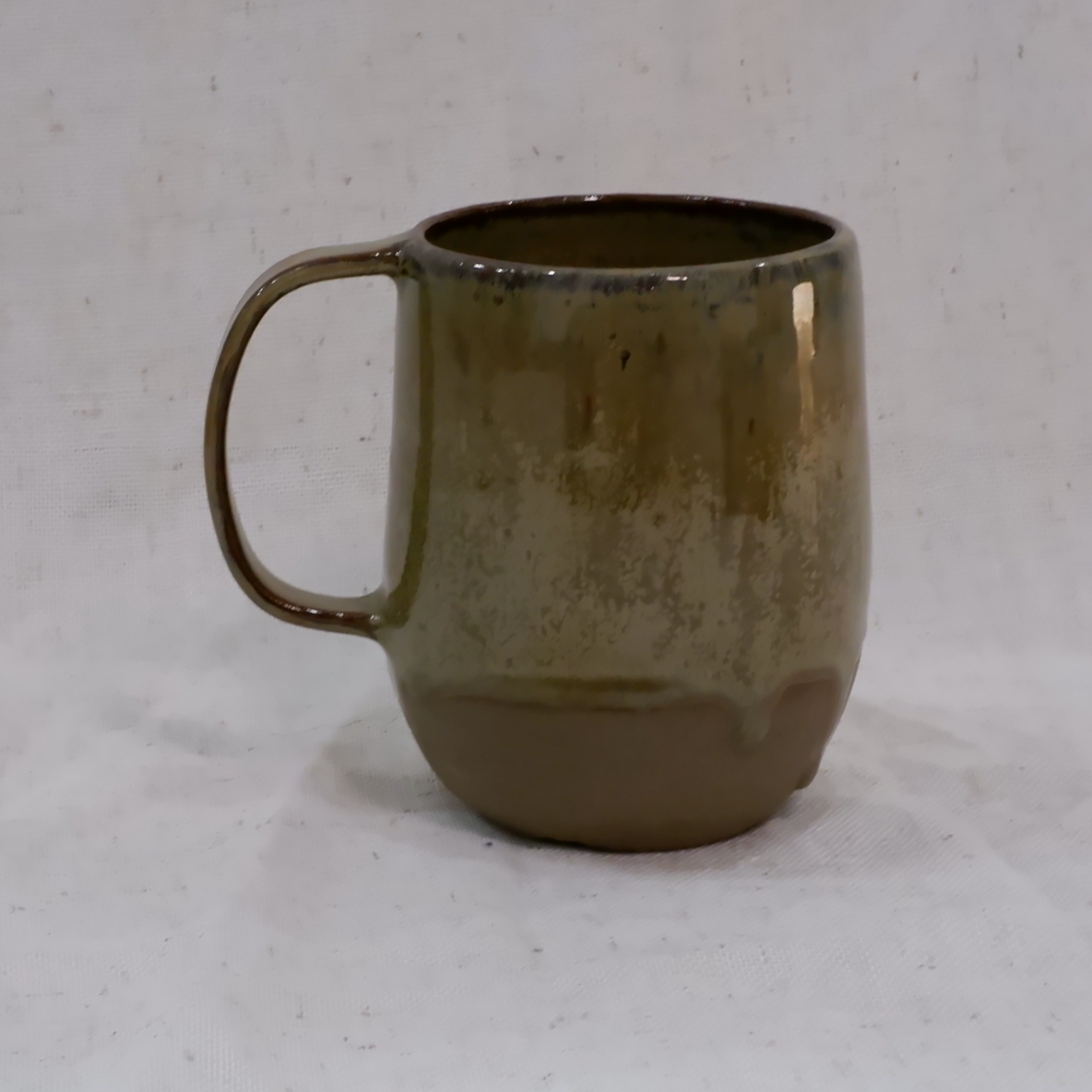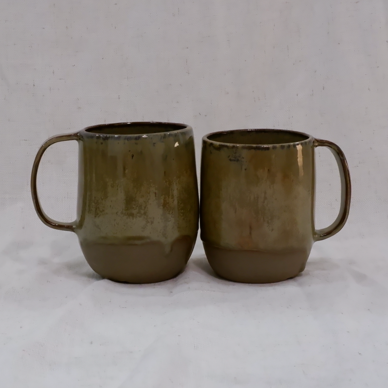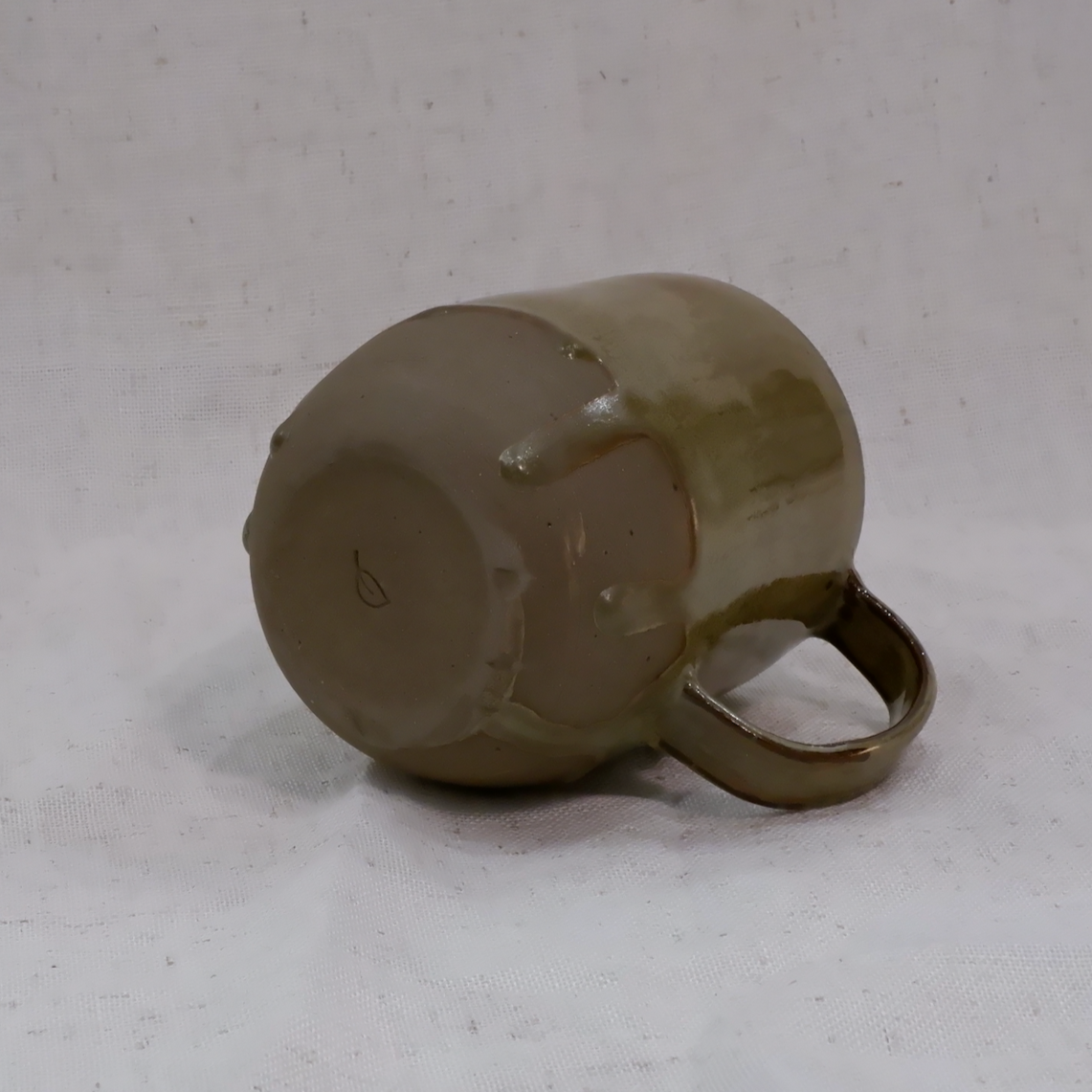 Indulge in the unique charm of the Melted Basil Mug - made with love (and my own two hands) on the wheel using recycled clay. The green drippy glaze adds a touch of whimsy to your daily cup of coffee. Unfortunately, the drips made both mugs stick to the kiln shelf, so their bottoms are not even. They've been sanded down to be smooth to the touch.