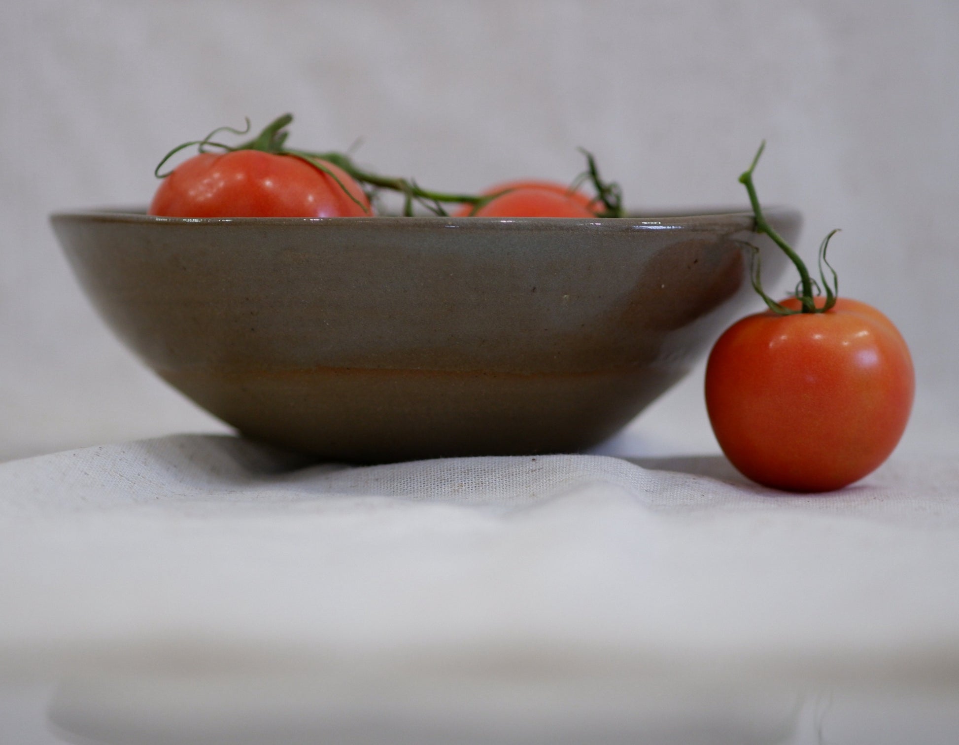One of my first large wide bowl, it struggled to survive my not-so-gentle trimming process, but he made it through! This piece is food and dishwasher safe. It went straight to a family member, so no dimensions unfortunately.