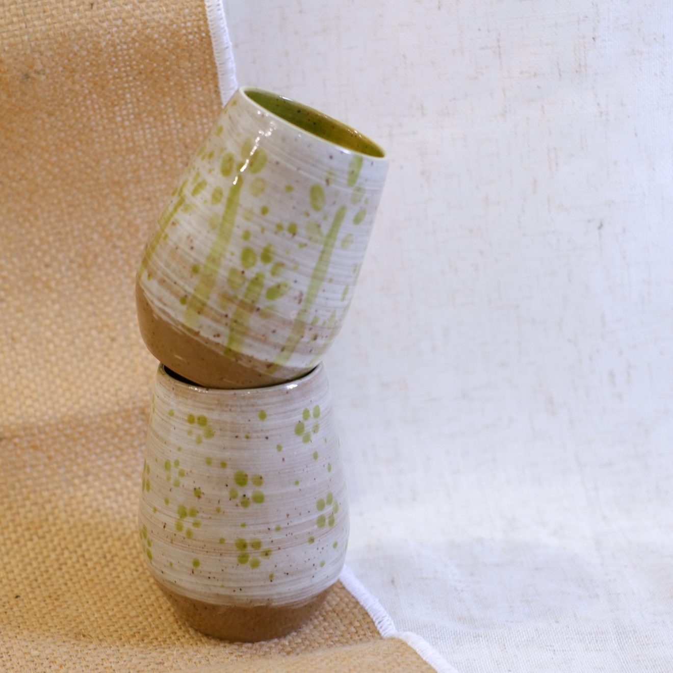 This handmade Small Everyday Cup is the perfect, eco-friendly way to enhance any occasion - big or small! Crafted from recycled clay and with its quirky glaze combinations, it'll be your go-to for added fun during coffee-breaks, much merriment with wine after work, and everything in between!