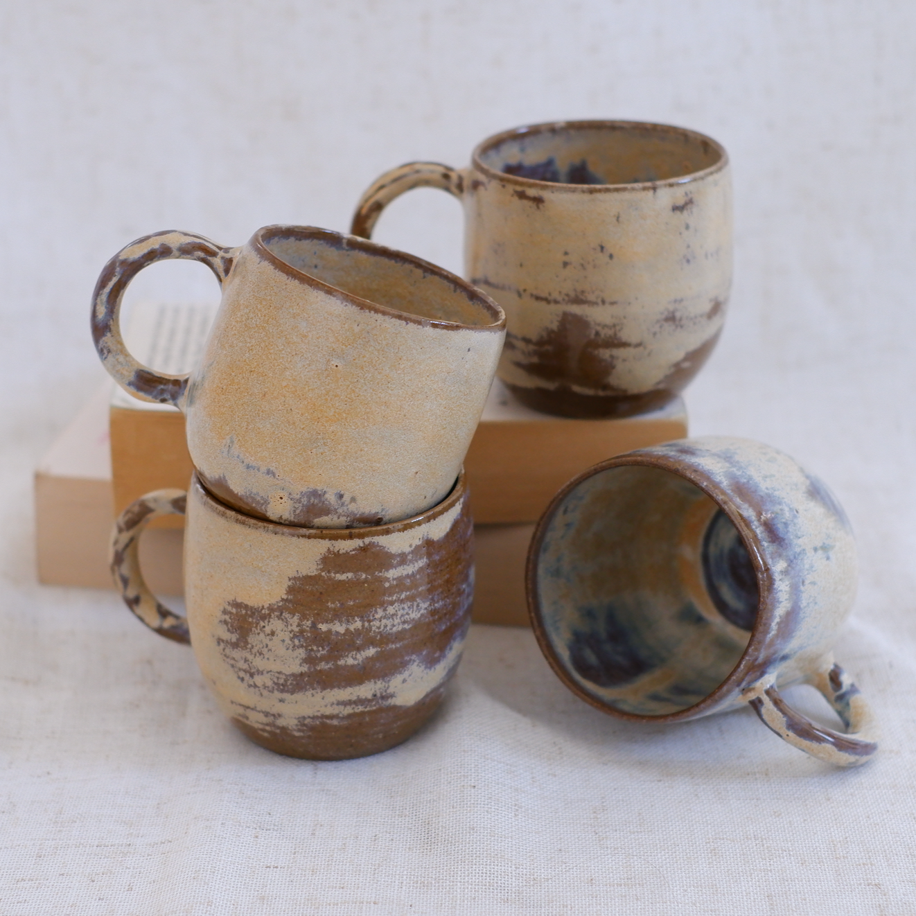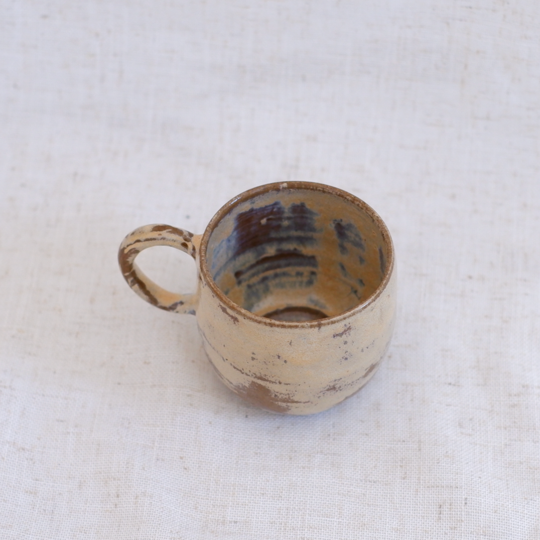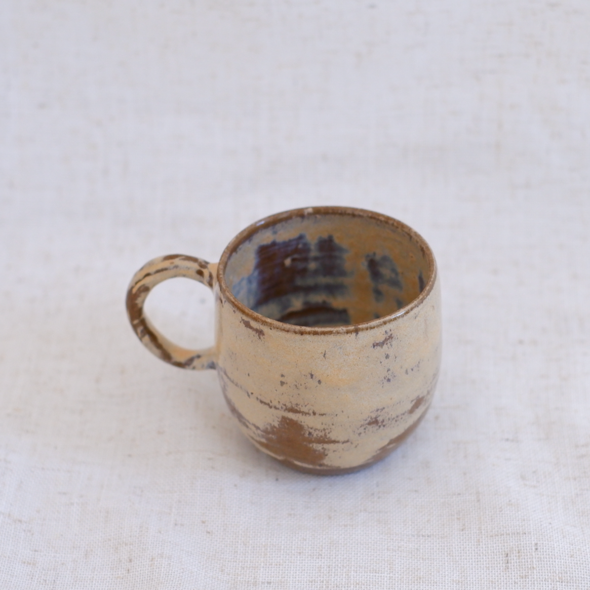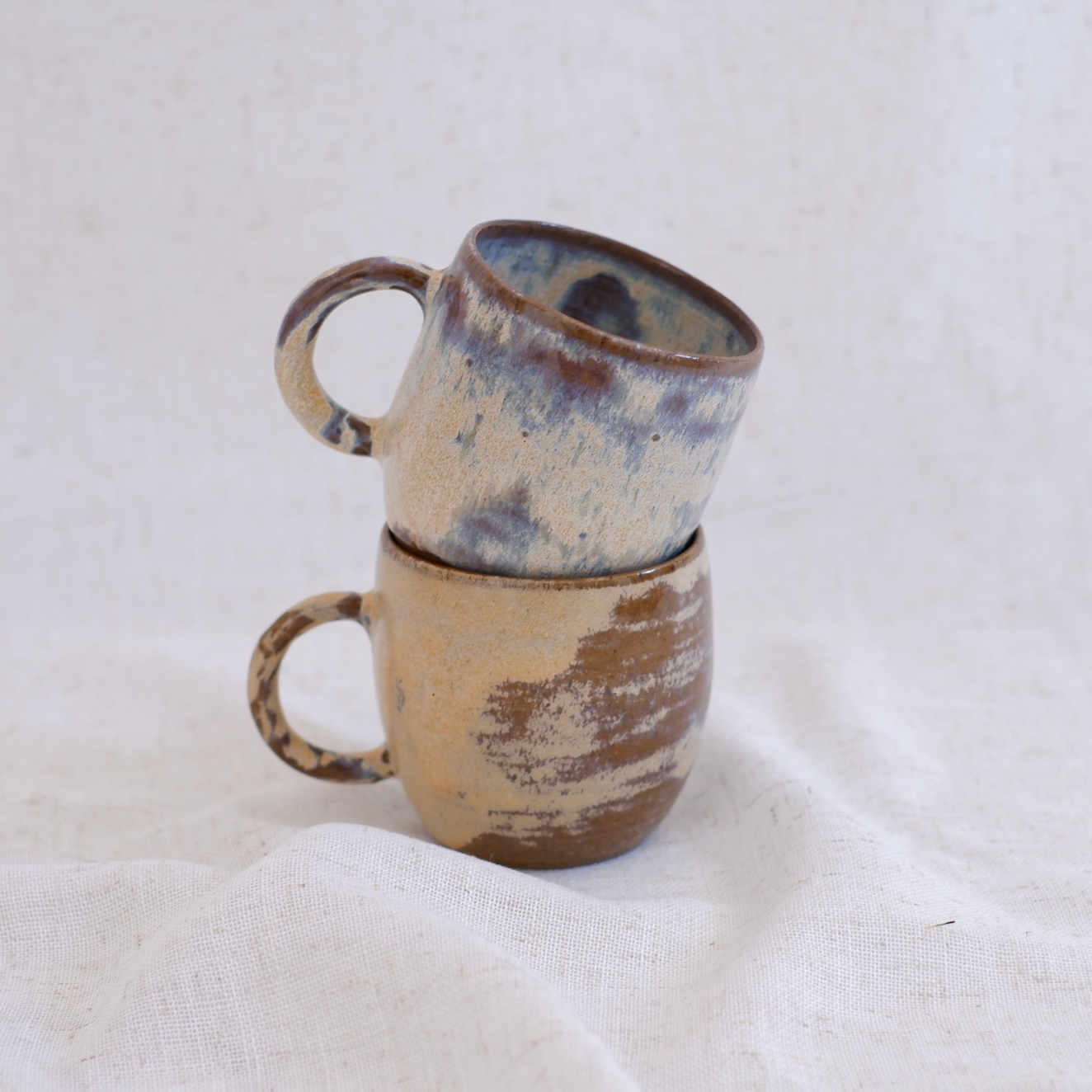 Add some sparkle to your morning with this handcrafted espresso mug. Each unique piece is wheel-thrown and finished with a matte and glossy glaze in tones of brown, lilac, blue, and even yellow. Perfect for a playful coffee lover!